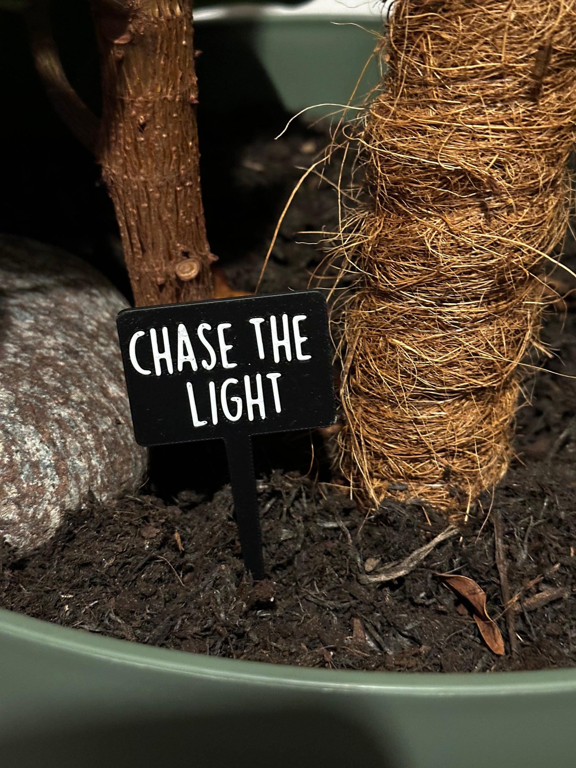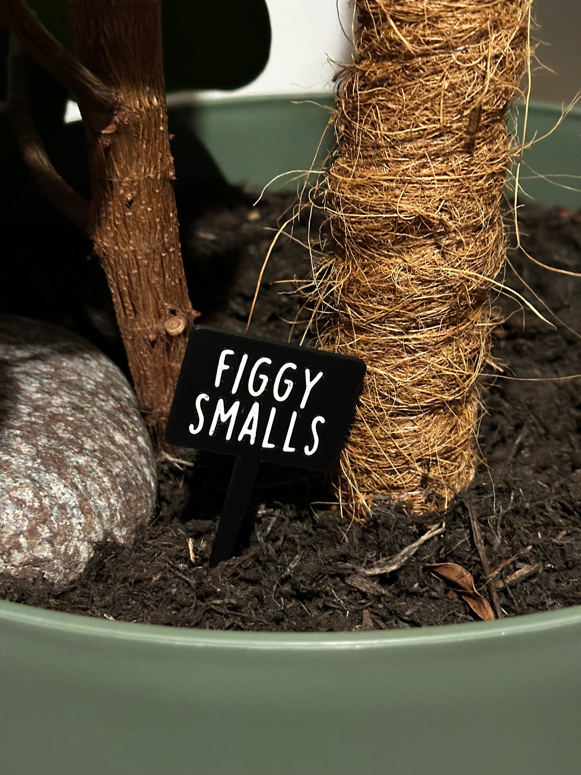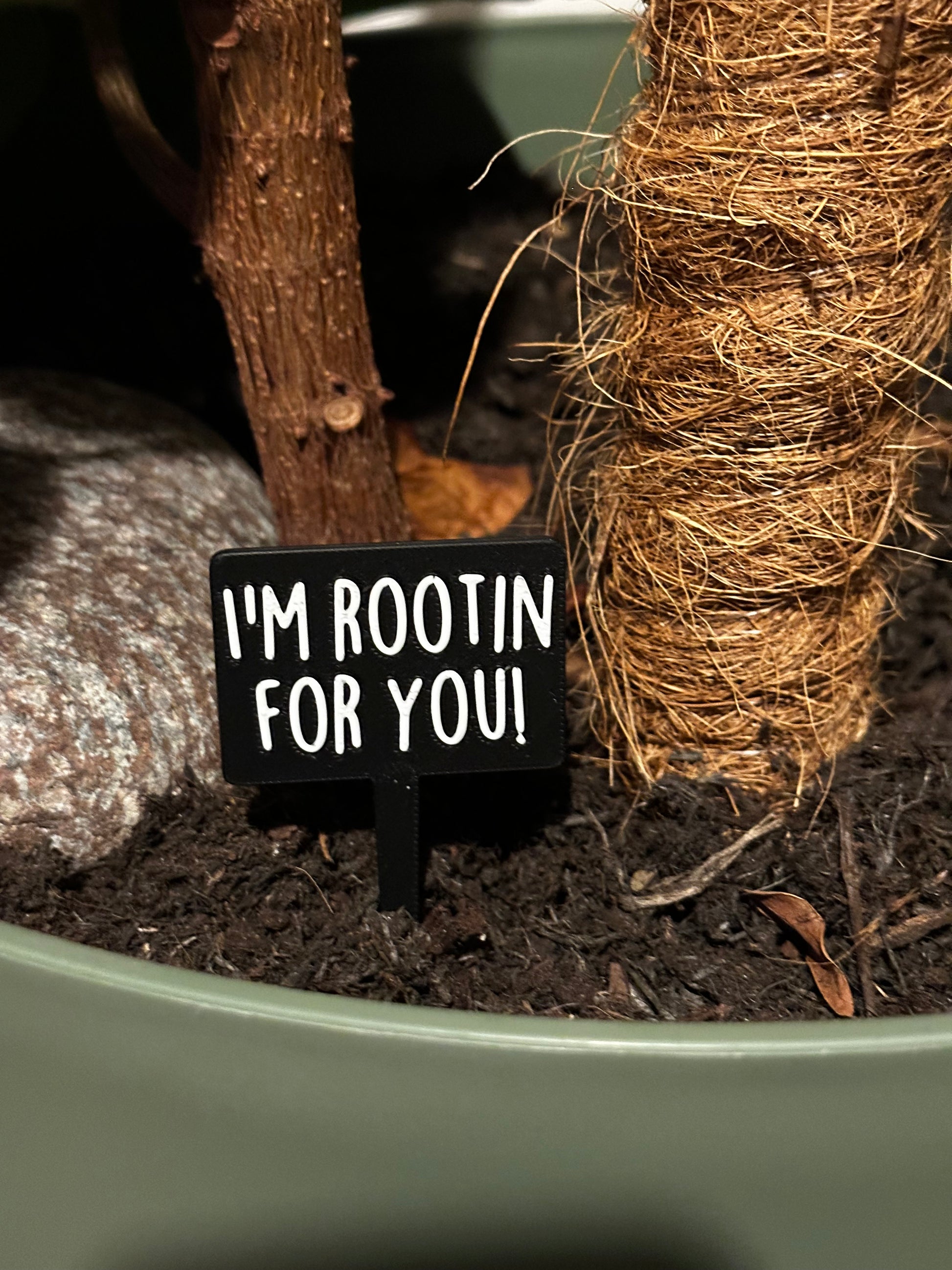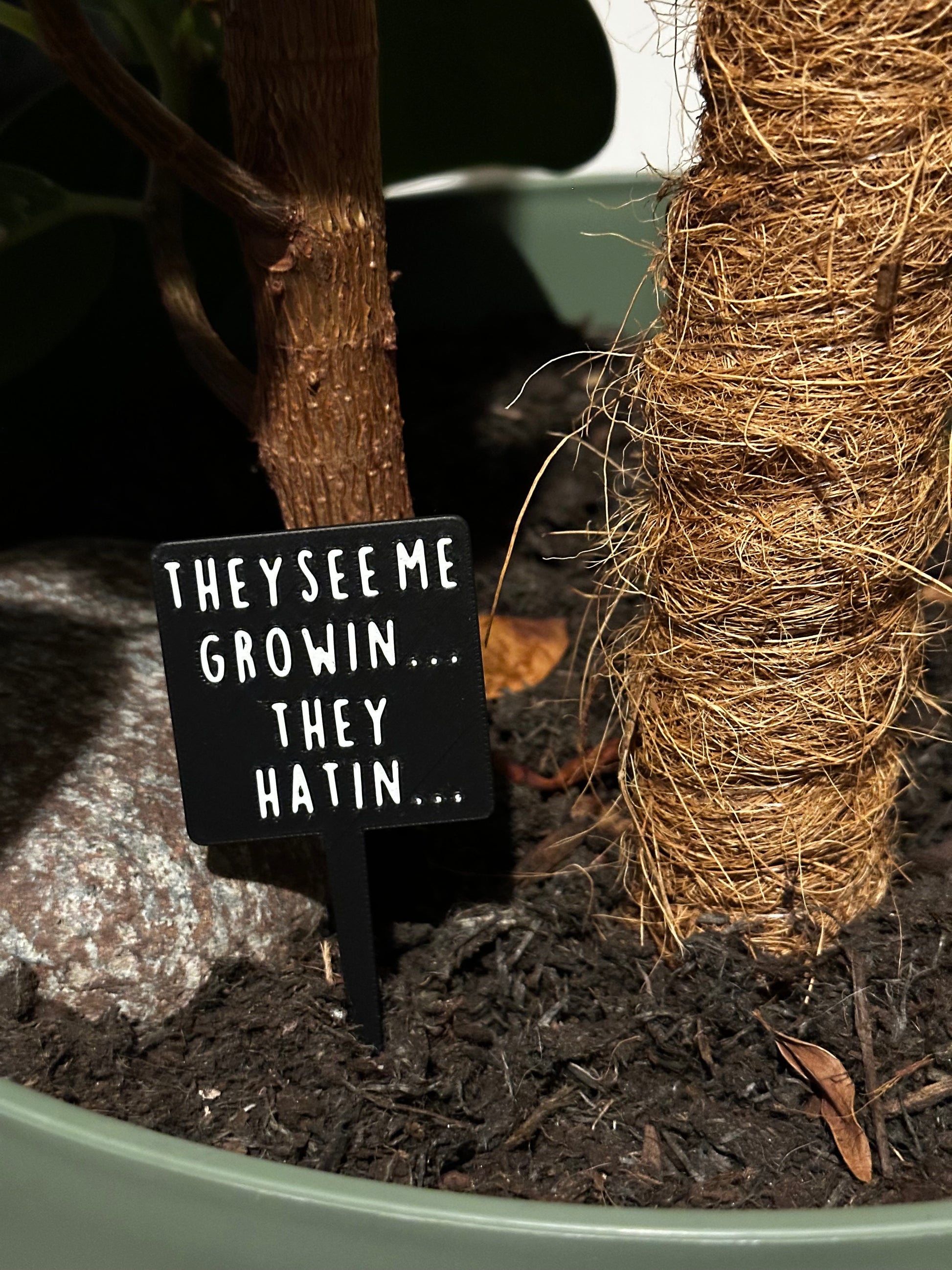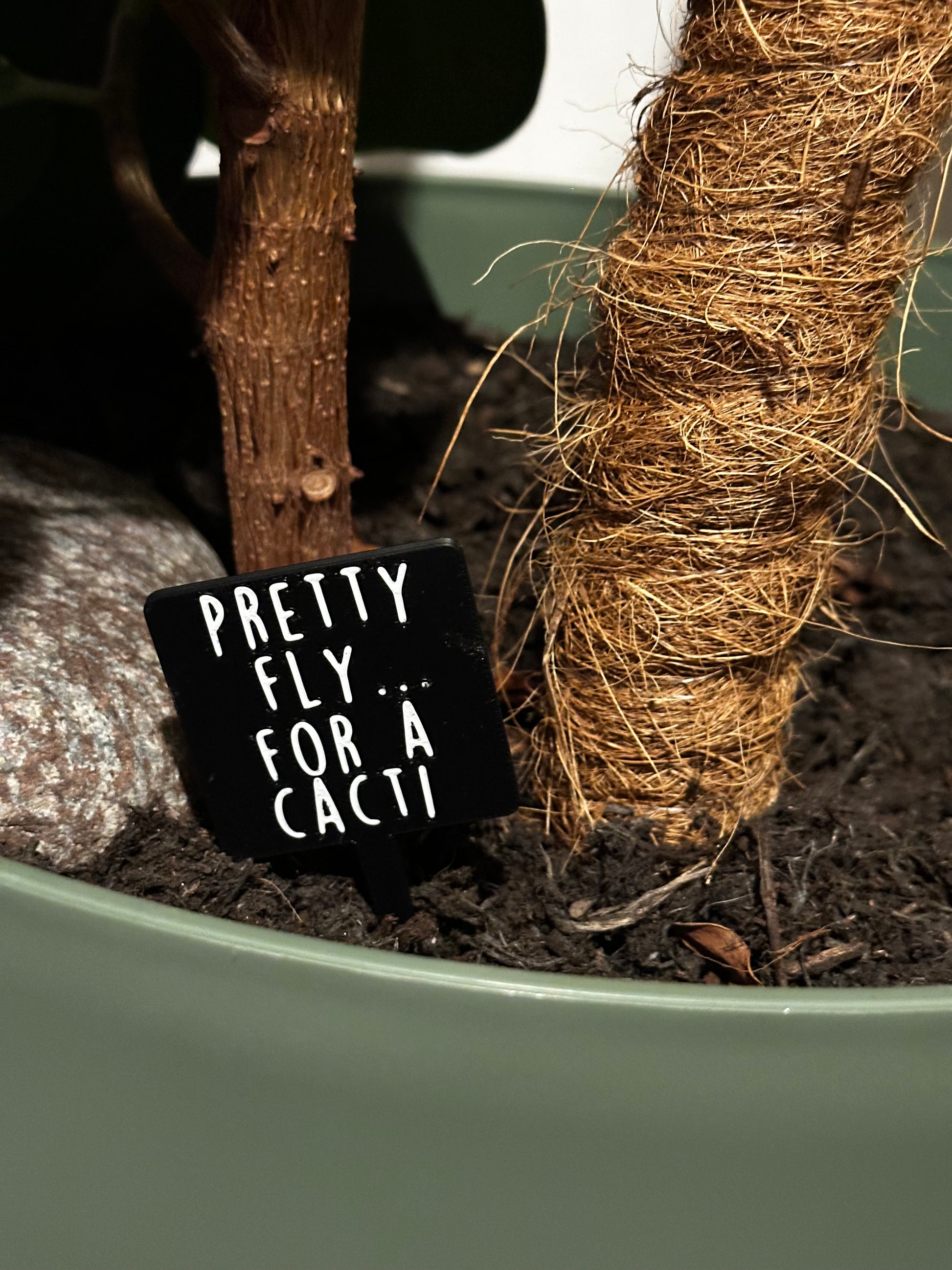 These 3D printed plant signs feature 41+ hilarious plant puns in bold white text on a sleek black background — the perfect mix of modern and mischievous.